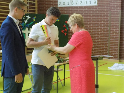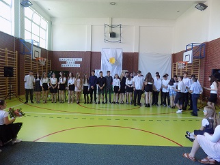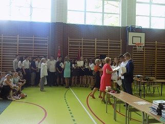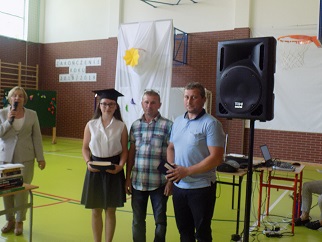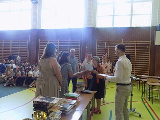 Po przemowach Pani Dyrektor wręczyła nagrody, dyplomy oraz podziękowania dla uczniów kl. I-VIII oraz listy gratulacyjne dla rodziców, a uczniom klasy III gimnazjum nagrody wręczyła Wicedyrektor Szkoły Pani Małgorzata Sokalska (dawniej Dyrektor Gimnazjum im. Ireny Sendler w Wykrotach).