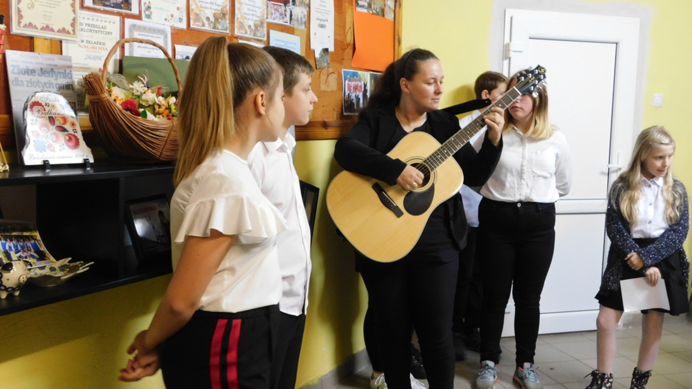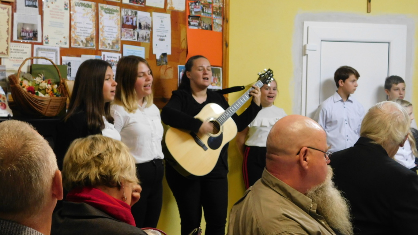 Dnia 16 listopada 2019r. uczniowie Szkoły Podstawowej im.Tadeusza Kościuszki w Wykrotach wystąpili dla seniorów z Zagajnika.Nowopowstałe Koło Gospodyń Wiejskich w Zagajniku pod kierownictwem p.Iwony Zamorskiej poprosiło dyrektora Szkoły o występ dla seniorów.Nasi uczniowie bardzo chętnie zaprezentowali swoje talenty wokalno-instrumentalne i recytatorskie. W Zagajniku świetlica wiejska jest wyłączona z użytkowania-KGW zaprosiło więc seniorów do zaadaptowanej sali na parterze,która pełni obecnie rolę,,świetlicy”.Panie z KGW Zagajnik przygotowały wspaniałe potrawy i ciasta,zadbały także o ciepłe napoje i dobry nastrój zaproszonych gości. Nad występem czuwała oraz akompaniowała uczniom p.Agnieszka Orawiec-nauczycielka muzyki,a wystąpili uczniowie z kl.3-8: Marysia i Karol Blatkiewicz,Oliwia Zubczyć,Marysia Piątka,Rafał Gola,Angelika Matkowska,Maja Jerzyk,Łukasz Zamorski i Paulinka Nitarska, która śpiewała i grała także na gitarze.