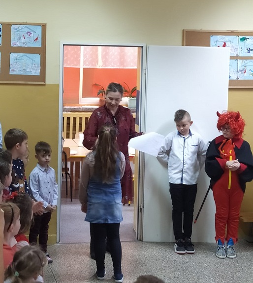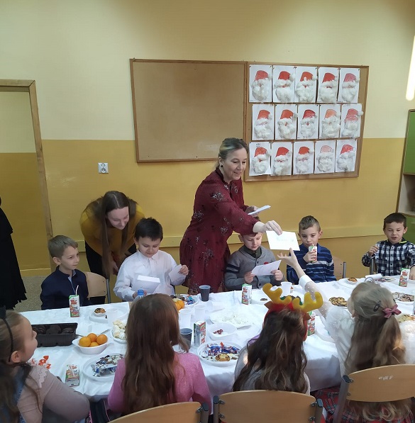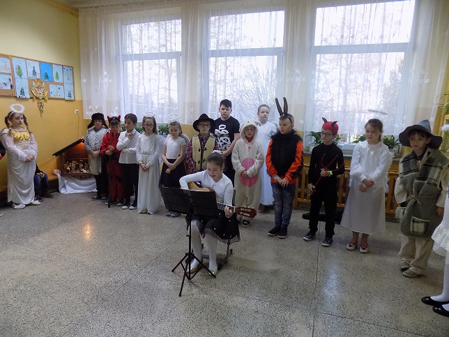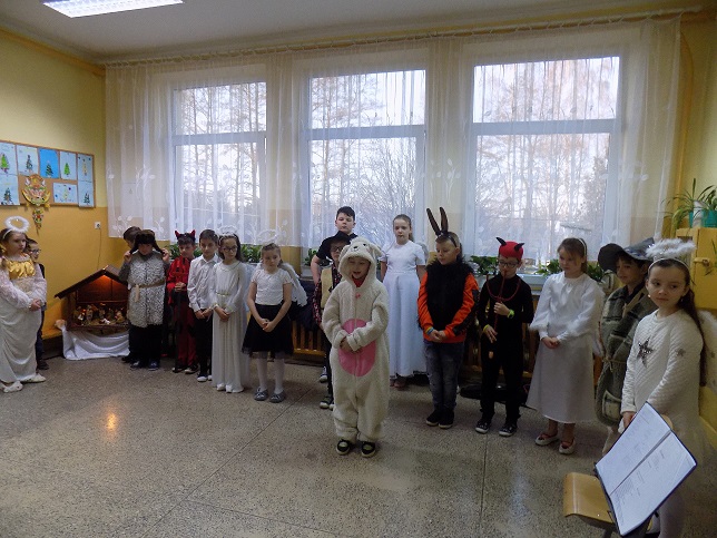 Dnia 20 grudnia odbyły się jasełka dla uczniów klas 0-3, które przygotowały dzieci z klasy 3 pod kierunkiem wychowawczyni pani Ireny Smolińskiej. Po jasełkach uczniowie udali sie do swoich sal. Rodzice bardzo sie postarali, aby dzieci miło spedziły ten dzień. Był opłatek, a później poczęstunek. Pod choinką leżały prezenty, które bardzo nas ucieszyły. To był cudowny dzień.