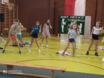 Bardzo nas wszystkich ucieszyły występy uczniów z kl. 8 oraz kl. 7b ( historia tańca - Dominik Filistyński ) pod opieką p. M . Klisiewicz oraz grupa taneczna z kl.4-6 pod opieką p. L . Kościelny, a także oprawa muzyczna pod kierunkiem p. A . Orawiec. Poza tym laurki, które pięknie narysowali uczniowie kl.4.