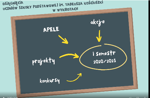 Osiągnięcia uczniów Szkoły Podstawowej im. Tadeusza Kościuszki w Wykrotach w I sem.roku szkolnego 2020/21