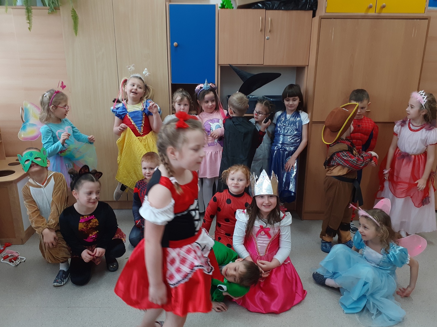 Przebierańcy świetnie bawili się, uczestnicząc we wspólnych zabawach i konkursach, a skoczna i rytmiczna muzyka zachęcała do tańca. Wszystkim zabawom towarzyszyła radość, śmiech i spontaniczna aktywność dzieci. Dzień zabaw i konkursów przebiegł w miłej, serdecznej atmosferze i dostarczył niezapomnianych wrażeń.