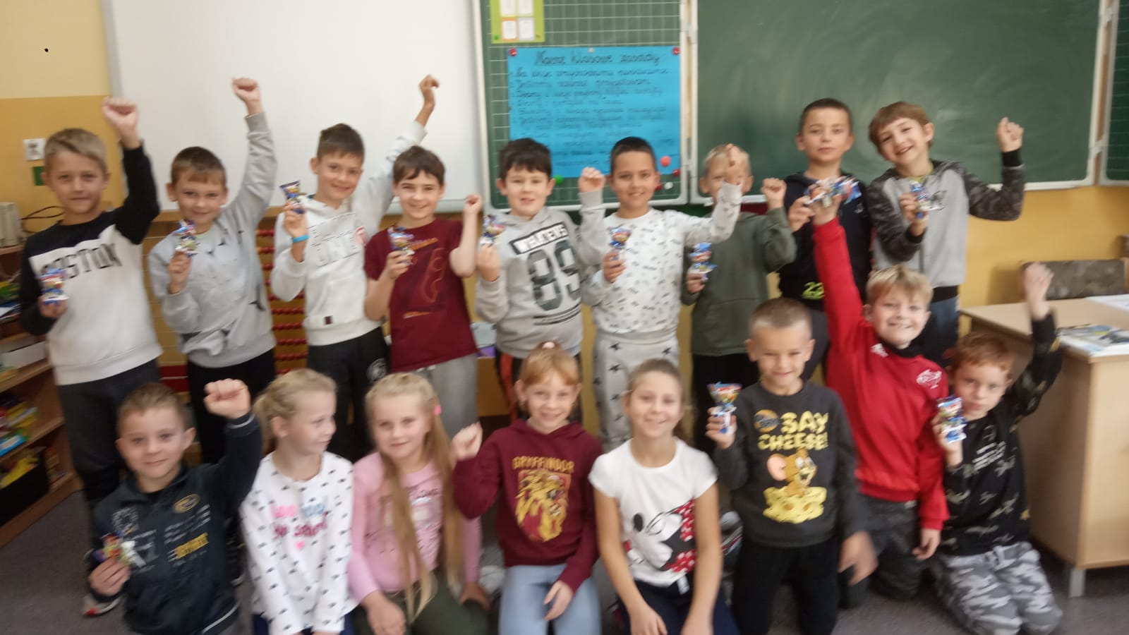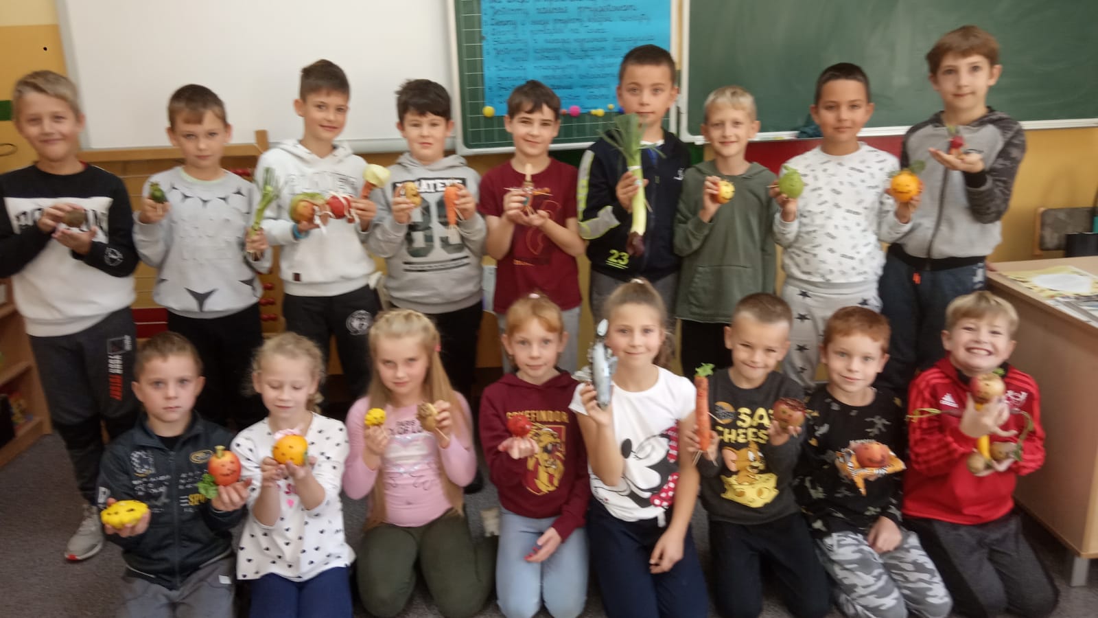 Dnia 30 września dziewczynki wręczyły sympatycznym kolegom z klasy II przygotowane przez rodziców upominki. Na boisku szkolnym odbyły się wesołe zabawy. Na zakończenie zajęć uczniowie wykonali ludziki z owoców i warzyw. To był udany dzień.