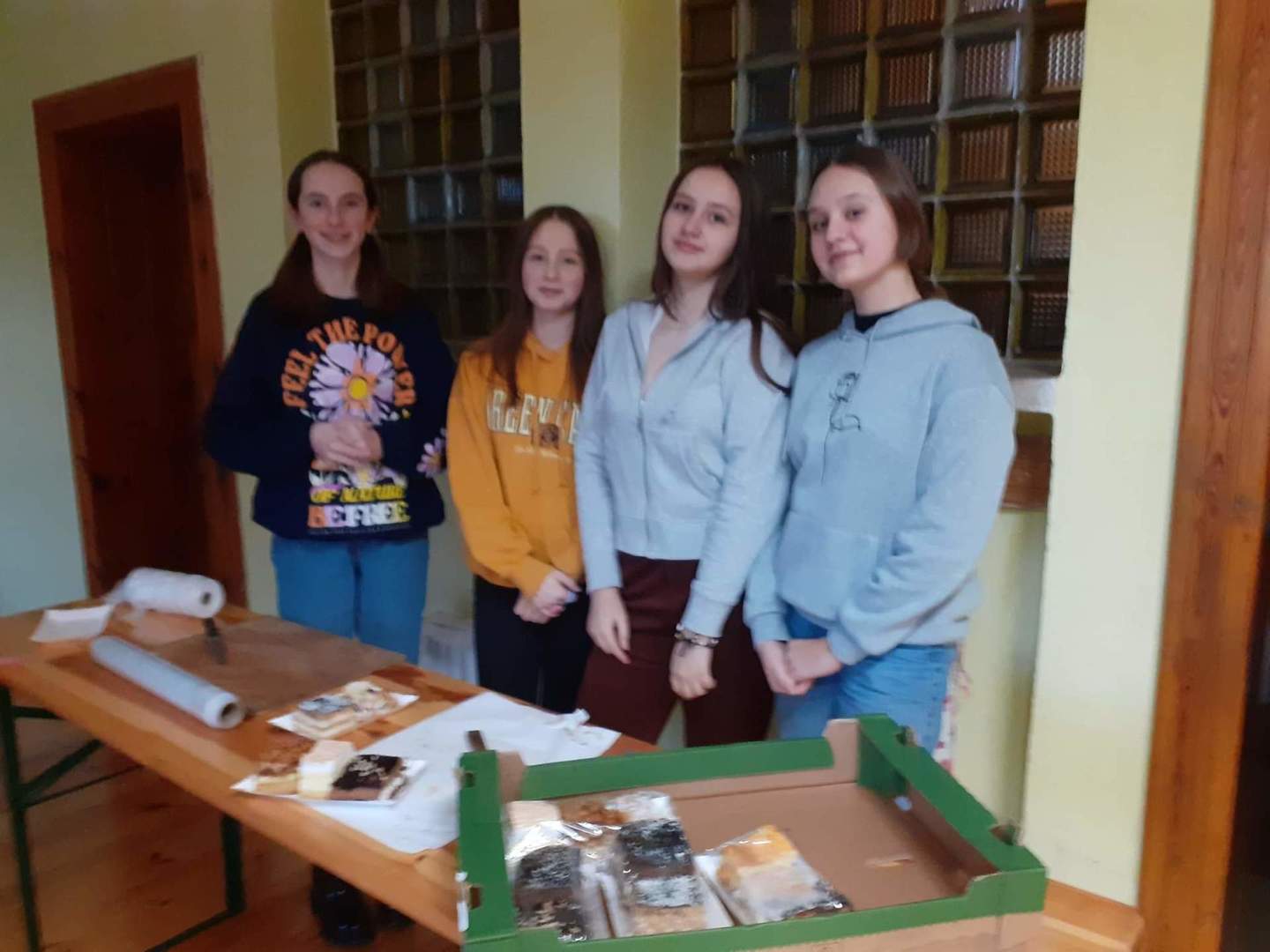 Dnia 20.02.2022r. uczniowie naszej szkoły dołączyli do Charytatywnego Kiermaszu Domowych Ciast, z którego dochód przeznaczony był na leczenie chorej Julki. Odbył się on przy Kościele św. Michała Archanioła i św. Anny w Wykrotach. Młodzież ze Szkolnego Koła Wolontariatu upiekła ciasta oraz pomogła w pakowaniu i sprzedaży. Byli to: M. Zasańska, Z. Micinowska, A. Gorczyca, N. Sochań, a także D. Filistyński, M. Setera i U. Micinowska. Wszystkim dziękujemy za przyłączenie się do akcji i okazaną pomoc.