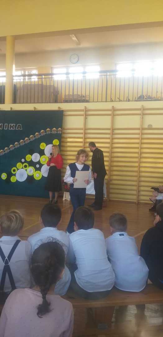 Pierwszy konkurs poprzedziły lekcje geografii przeprowadzone w kl.4-6 przez W.Traczyk nt.odnawialnych źródeł energii. Na konkurs ,,Cztery pory roku z odnawialnymi źródłami energii”przesłaliśmy prace 10 uczniów z kl.4-6 i otrzymaliśmy informację,iż Milena Nitarska-uczennica kl.6 znalazła się w gronie 12 laureatów konkursu z całego Dolnego Śląska. 15 grudnia 2022 została zaproszona wraz z rodzicami do Wrocławia do WFOŚIGW na uroczystość rozdania nagród. Uczennicę uczy plastyki p.A.Błaszczyszyn.
