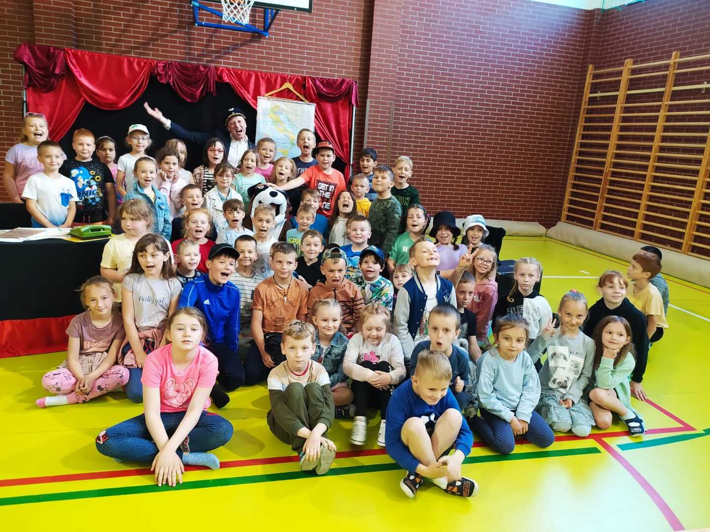 Do naszej szkoły przyjechali aktorzy. Przedstawili najmłodszym uczniom teatrzyk pod tytułem: "O psie który jeździł koleją".