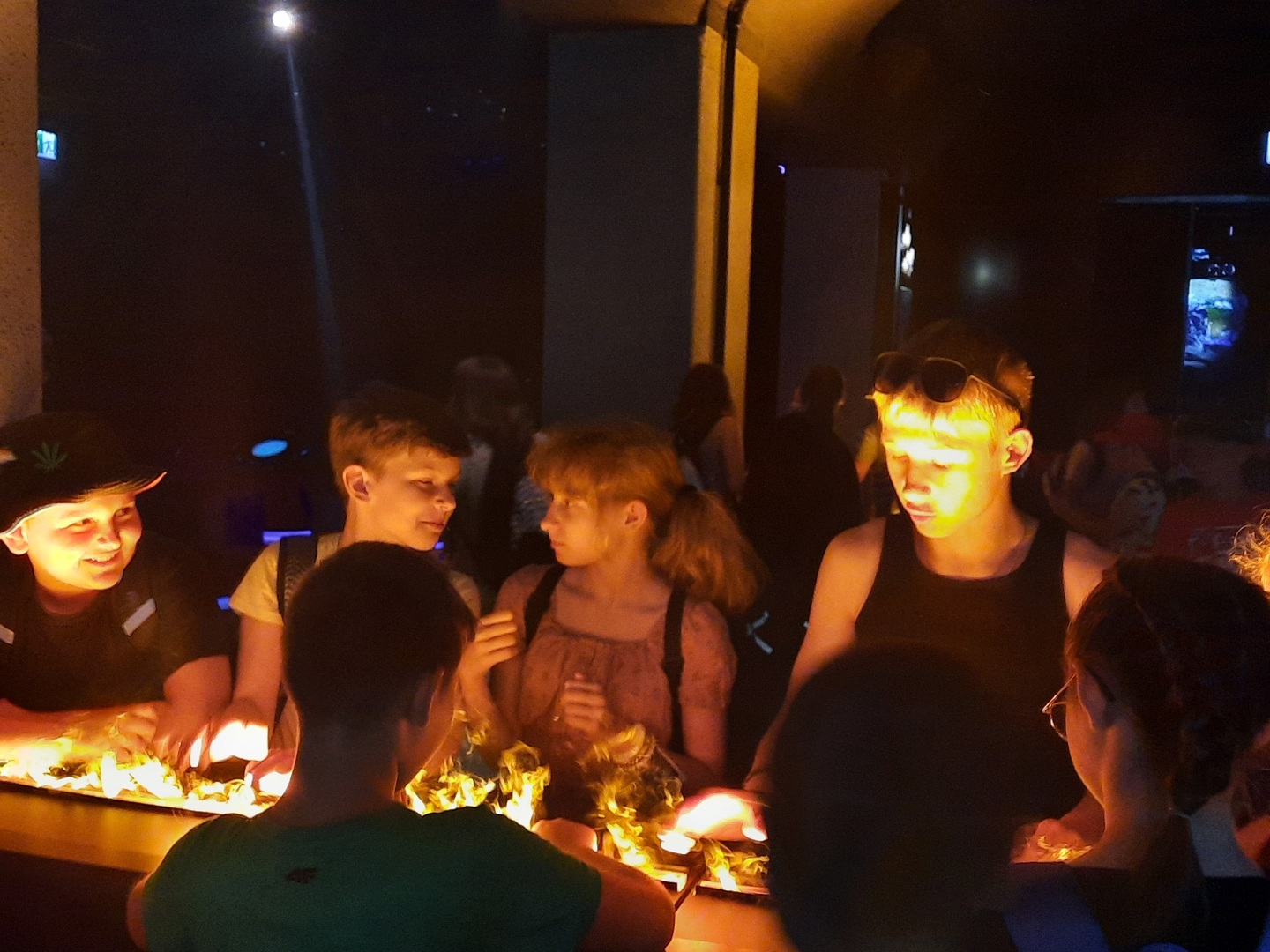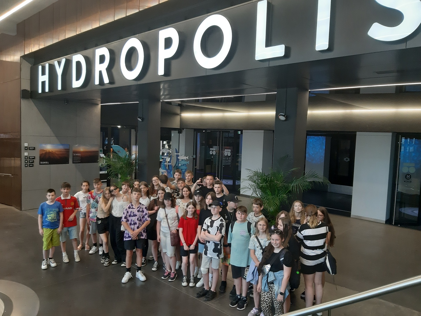 Kolejnym punktem wycieczki była wizyta w HYDROPOLIS- Centrum Edukacji Ekologicznej we Wrocławiu, gdzie interaktywne technologie ukazują wodę w zupełnie nowy i atrakcyjny sposób. Wchodząc, uczniowie przechodzili pod drukarką wodną, później obejrzeli film,, Wszystko zaczyna się od wody”, mogli wejść do Batyskafu - do wiernej repliki tej maszyny i wyobrazić sobie, co musi czuć człowiek, który znajduje się 11 kilometrów pod powierzchnią oceanu. Widzieli również śnieżną zamieć z bliska- symulator śniegu, a także ogień z pary wodnej.