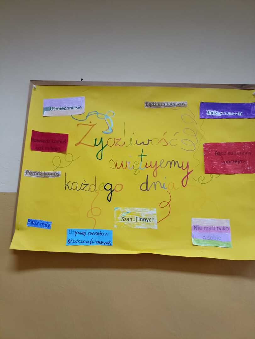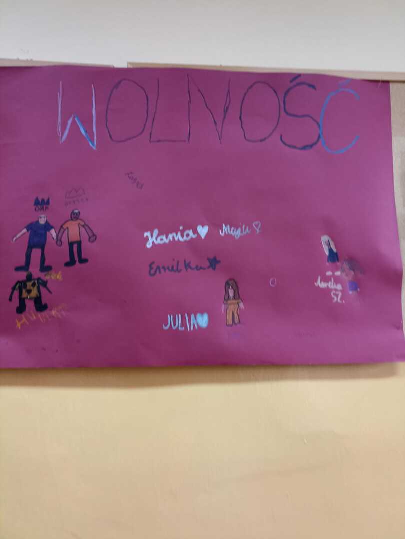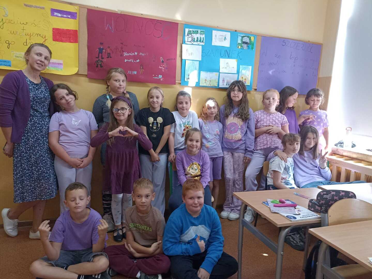 Ponadto od poniedziałku – 18.09. 23r. w Dzień Życzliwości cała społeczność szkolna przebiera się w kolor żółty. We wtorek – 19.09. 23r. w Dzień Wolności: w kolor czerwony. Środa– 20.09.23r. Dzień Szacunku to kolor niebieski. Czwartek – 21.09.23r. Dzień Szczerości: w kolor fioletowy. Piątek – 22.09.23 r. jest dniem podsumowania całego projektu. Na apel uczniowie przebierają się w ubrania w kolorach wartości: klasy 1 i 8 – żółty; klasy 2 i 7 – czerwony; klasy 3 i 6 – niebieski; klasy 4 i 5 – fioletowy; ,,0” – do wyboru wszystkie kolory. Uczniowie prezentują przygotowane plakaty. Dodatkowo każda klasa ma do wyboru przedstawić: prezentację, scenka/skecz, piosenkę, układ taneczny, lub pantomimę.