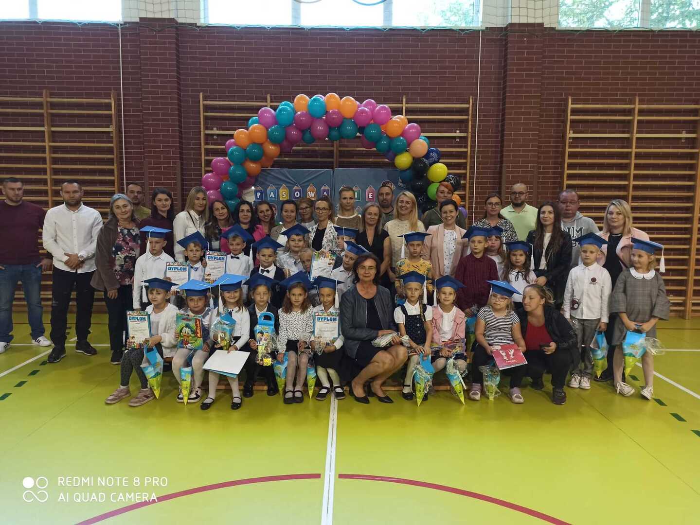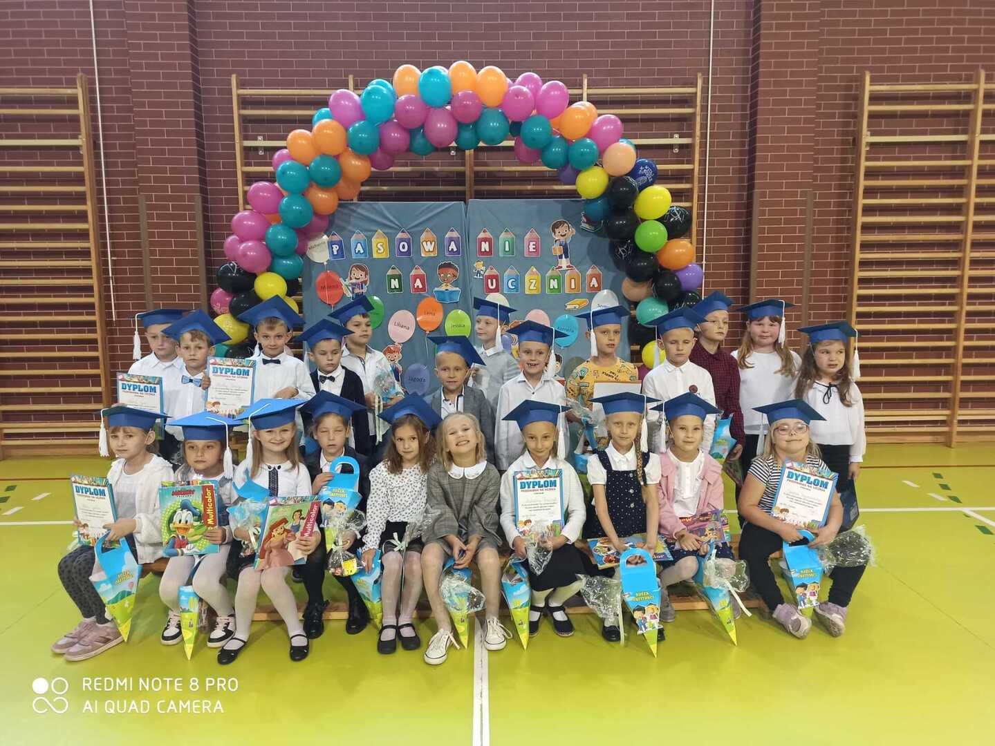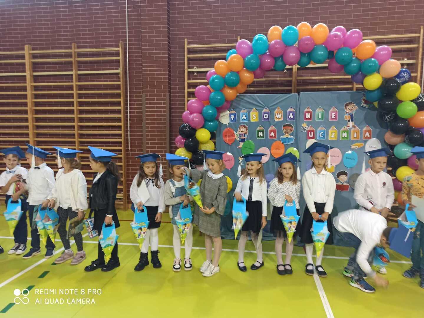 Dnia 6 października 2023 r. odbyło się w szkole Pasowanie na ucznia. Dzieci z klasy I pięknie śpiewały piosenki i recytowały wiersze. Następnie rodzice założyli swoim pociechom birety. Uczniowie złożyli uroczyste ślubowanie i zostali pasowani na uczniów naszej szkoły. Na pamiątkę otrzymali dyplomy oraz wspaniałe upominki od rodziców. Pani wicedyrektor M. Klisiewicz wręczyła uczniom książeczki. Życzenia pierwszoklasistom złożyła koleżanka z klasy 3 życząc im samych dobrych ocen. Na zakończenie uroczystości wszyscy zrobili pamiątkowe zdjęcie.