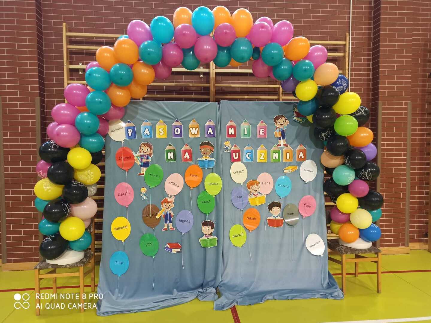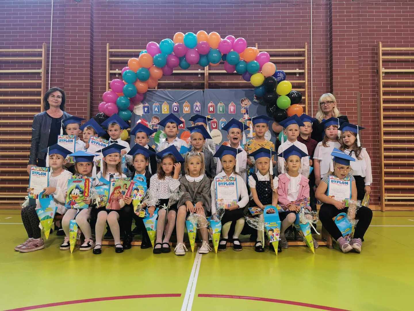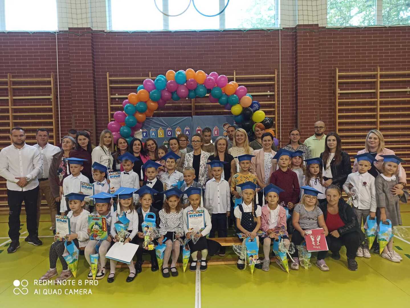 Dnia 6 października 2023 r. odbyło się w szkole Pasowanie na ucznia. Dzieci z klasy I pięknie śpiewały piosenki i recytowały wiersze. Następnie rodzice założyli swoim pociechom birety. Uczniowie złożyli uroczyste ślubowanie i zostali pasowani na uczniów naszej szkoły. Na pamiątkę otrzymali dyplomy oraz wspaniałe upominki od rodziców. Pani wicedyrektor M. Klisiewicz wręczyła uczniom książeczki. Życzenia pierwszoklasistom złożyła koleżanka z klasy 3 życząc im samych dobrych ocen. Na zakończenie uroczystości wszyscy zrobili pamiątkowe zdjęcie.