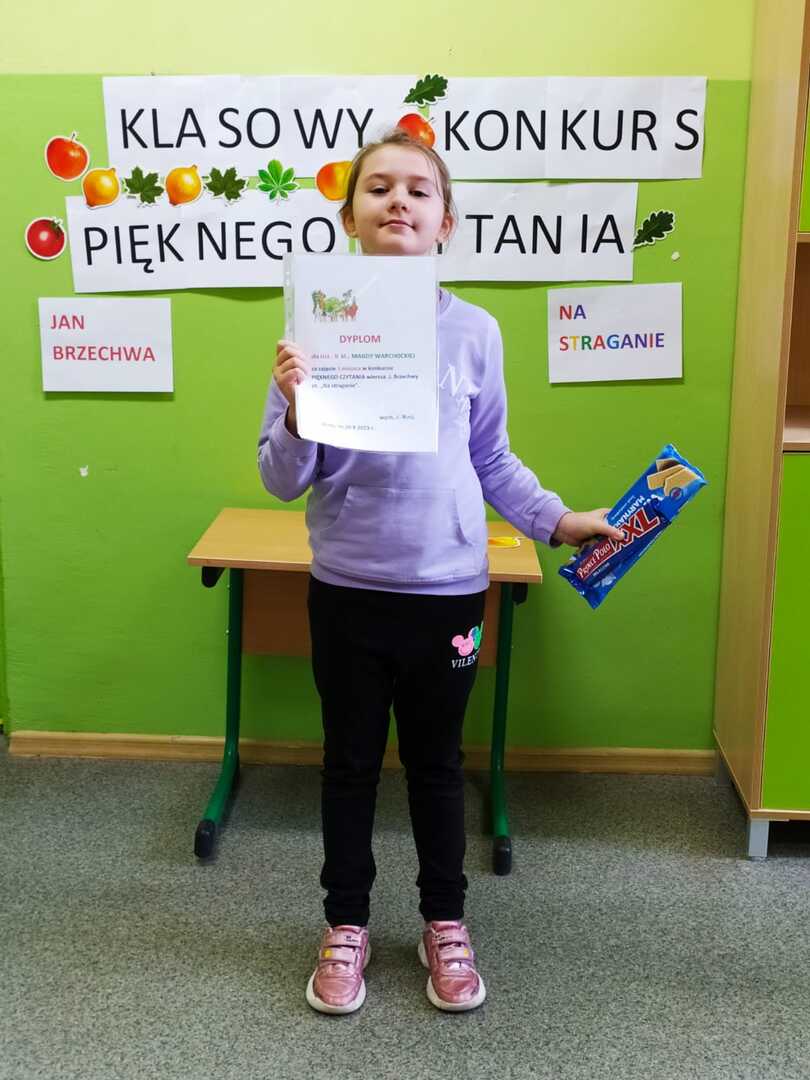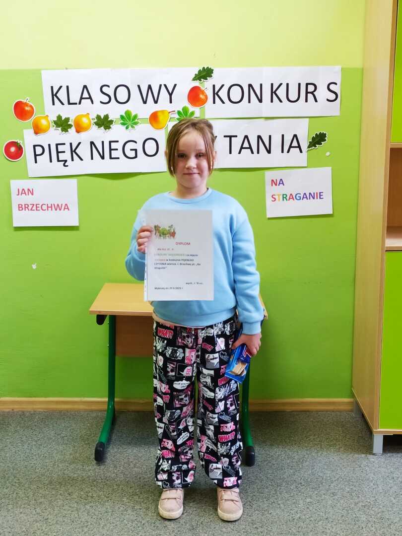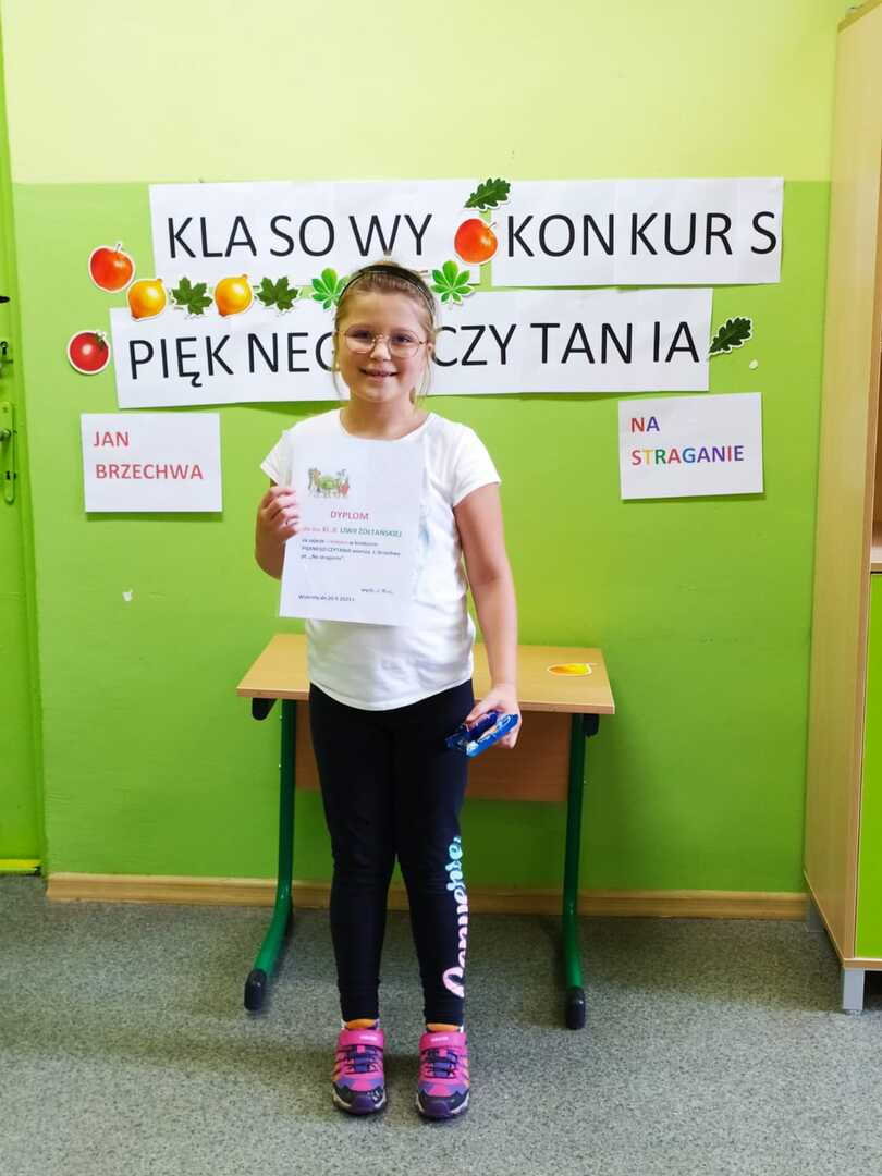 Wszyscy uczniowie, którzy wzięli udział w konkursie czytania przepięknie przeczytali wiersz Jana Brzechwy pod tytułem " Na straganie". Każdy uczeń otrzymał dyplom i nagrodę.