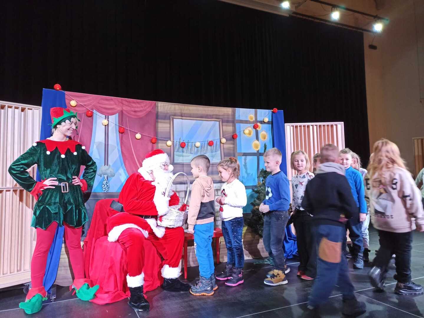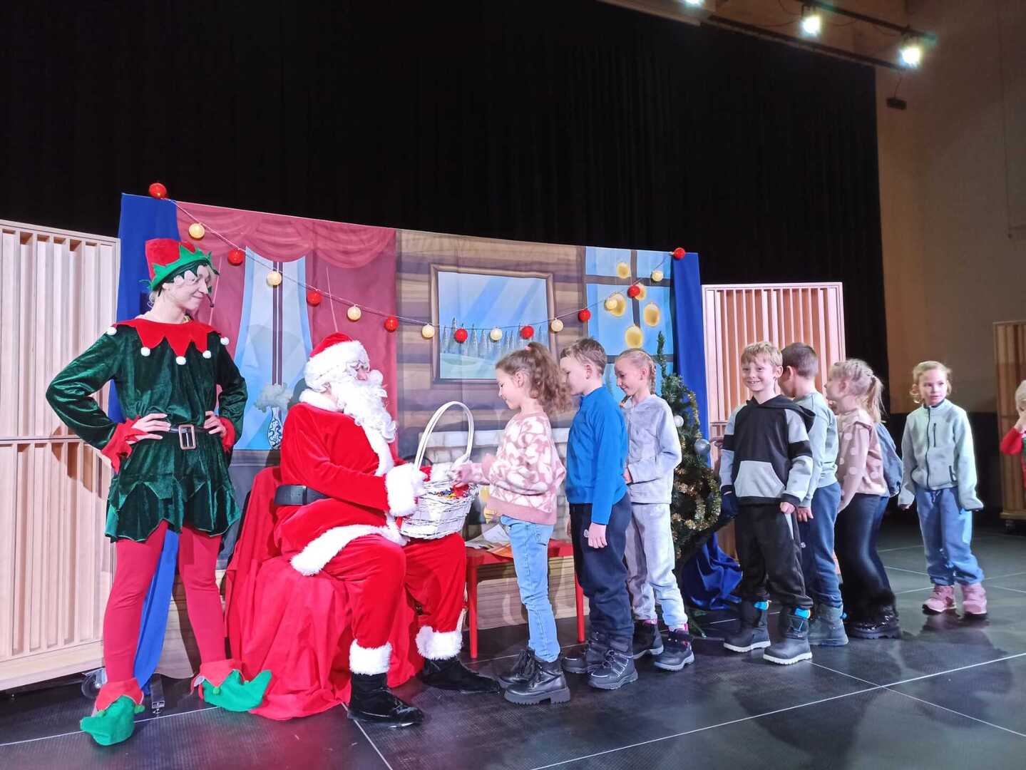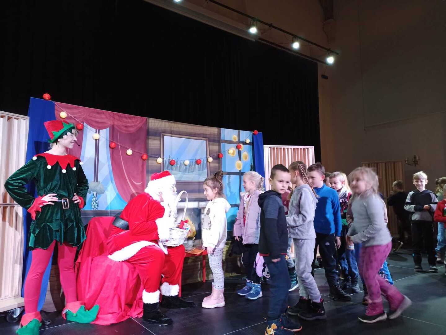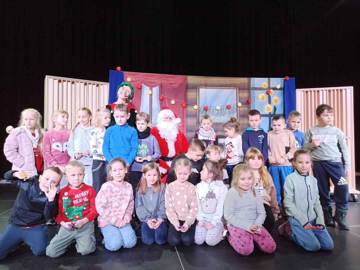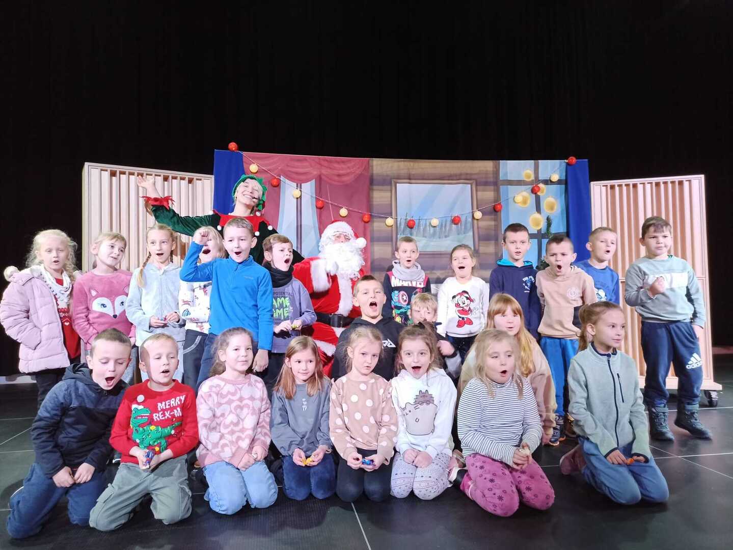 Dnia 4 grudnia klasa I wybrała się do Nowogrodźca na spotkanie ze Świętym Mikołajem. W Centrum Kultury i Sztuki MUZA uczniowie obejrzeli Teatr Mikołajkowy Teatru Kurtynka ,, Nie taki Święty Mikołaj". Podczas przedstawienia było dużo zabawy i śpiewu. Po spektaklu Mikołaj zaprosił dzieci na scenę, aby się z nimi zapoznać i częstował je cukierkami. Na zakończenie wszyscy zrobili wspólne zdjęcie z Mikołajem. Mamy nadzieję, że w tym tygodniu przyjdzie do dzieci z naszej szkoły. Uczniowie z wycieczki wrócili zadowoleni i pełni niezapomnianych wrażeń.